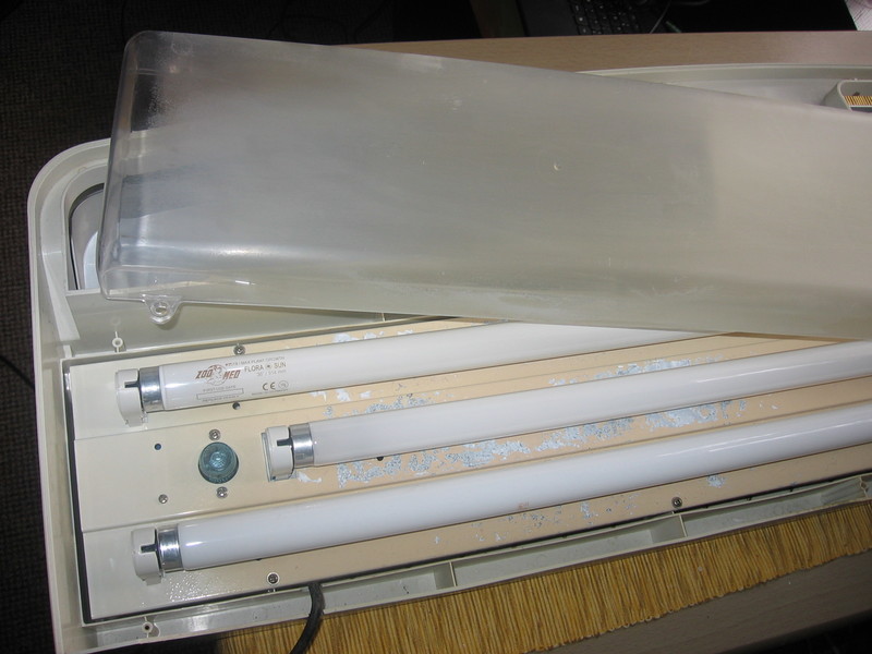 Увеличаването на светоденя трябва да го правиш постепенно и бавно, така сътресенията в аквариума ,ще са по-малко.По-принцип капака ако се е матирал спира някаква част от светлината.Може да се опиташ да го полираш с много финна полир паста или водна шкурка 2000-3000 ,но се исказдраво и продължително търкане *THUMBS UP*С манадото растенията и новото осветление аквариума е станал много хубав :-)