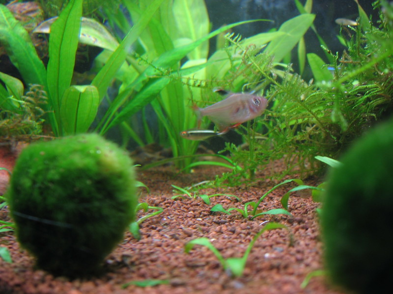 От днес е и  Коледния мъх да видим дали ще го завъдя.  и едни 6 serpae тетри..ох че хубаво червени са  и веднага подложиха на изпитание хегемонията на тернециите :))