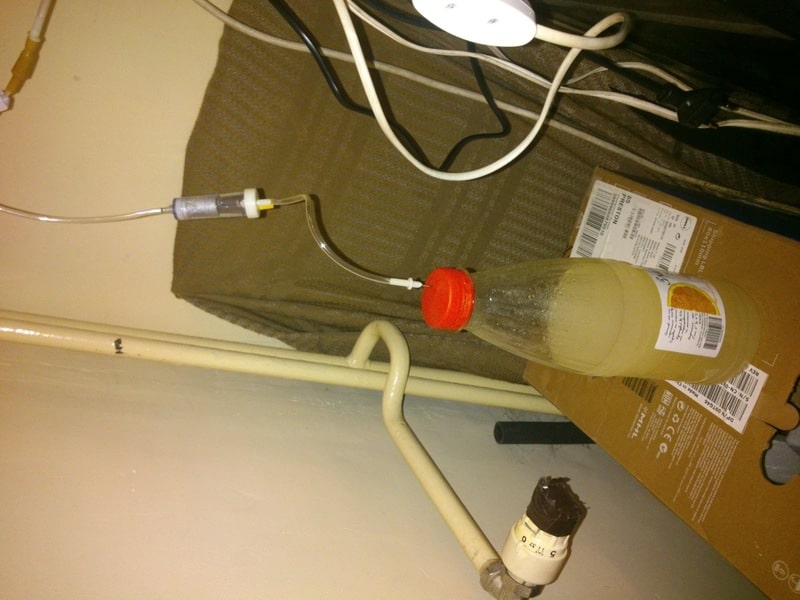 Системата с мая и захар най-добре да се прави във шише от кока-кола. Изпитано издържа на много голямо налягане, никакъв шанс да избие капачката. Прави се дупка в капачката около 5мм (стандартните маркучи за въздух са с външен диаметър 6мм, системата за вливане мисля е по-тънка) набива се маркучето в дупката да се покаже отвътре, след което в стърчащата от вътрешната страна на капачката част от маркуча се набива пластмасовия накрайник от сиситемата предназначен за иглата. Така няма шанс да изпусне или маркуча да се измъкне от дупката.