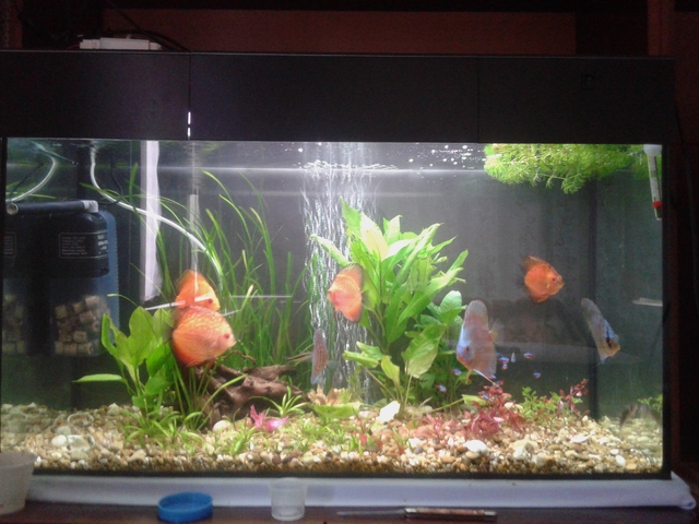Не е като повечето тук основно растителен,но ме радва доста. В началото исках да заложа на повече растения,но после не се сдържах и си купих няколко дискуса. Слабост са ми от години и наскоро си възобнових хобито и не се сдържах.