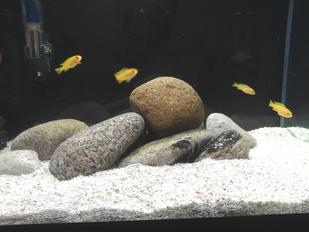 Малко да размърдам темата, че съвсем мухляса :). Не, че има нещо ново, ама все пак. Единственото нещо, което съм променял е подредбата на камъните. Този път просто ги напусках небрежно което както дойде. Ето едно клипче на цихлидарничето в момента (не обръщайте внимание на следите от вода по задното стъкло  :-[).