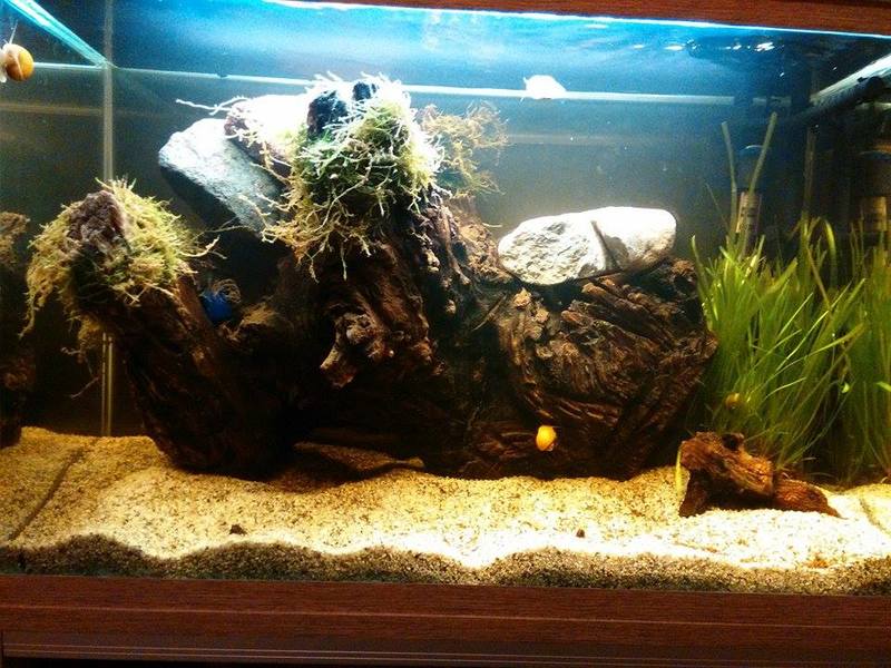 Мисля да наблегна На камъни и големия дънер (ЛАМПА) а малкия корен да го върна в малкия аквариум. Който не мисля да разтурям близките 6м :)