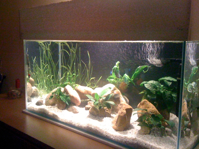 Хубаво аквариумче, добре дошъл обратно в хобито. Сложи  ако искаш пасажни, по-добре ще е  :-)