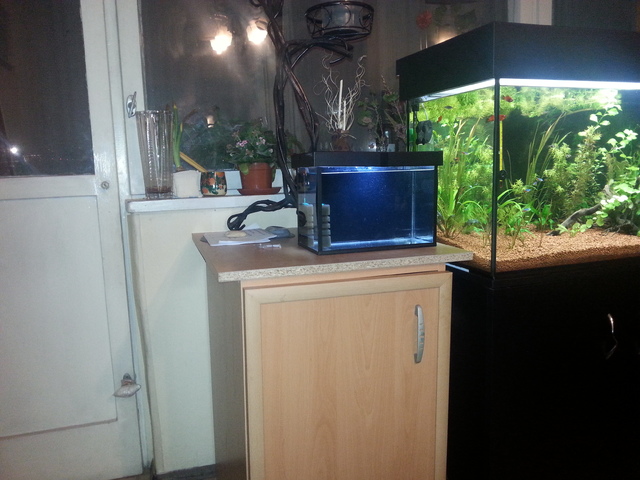 Аквариума е на около 6 седмици от старта. Както ще видите, подготвя се и едно малко "нещо"... the нещото, дето не се знае още родилен съд ли ще е или скаридарник :).