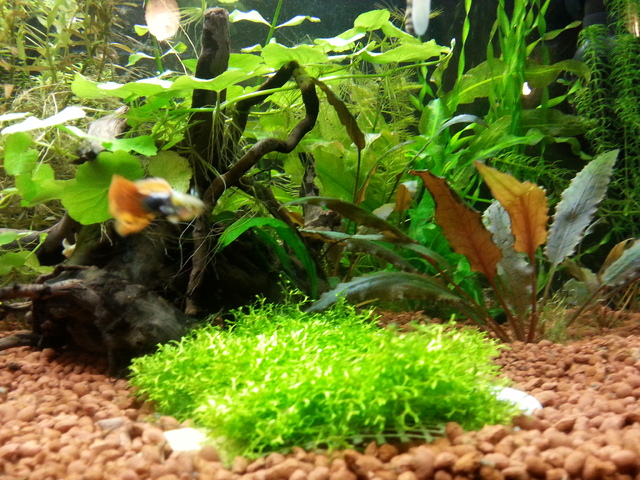 Даже тука на работа имам малко накиснат грунд в една чашка, бъркам го тука, гледам процента на потъване всеки ден. Отначало бяха около 30 зърна изплувалите. Сега е 4-ти ден и са 9-10. След няколко дни би трябвало всичко да потъне. В аквариума, това ще стане по-бавно обаче. Мисля, че чак след около месец ще е по-добре. Да не говорим, че в аквариума има и такива леки зърна, които са затиснати сега под другите и при евентуални разкопки, ще изплуват сигурно... Може да засадя още 2-3 растения и спирам да бутам, да започват да си олягат нещата.