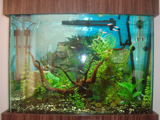 Двете скаларийки има вероятност да започнат да се бия ти гонят още малко като поотрастнат. Мисля ,че ти малък обема за такива риби, но пък за сметка на това можеш да удвоиш бройката на останалите и като допълнение 2-3 анциструса или 6-8 коридораси пигмей ще изглеждат много добре.