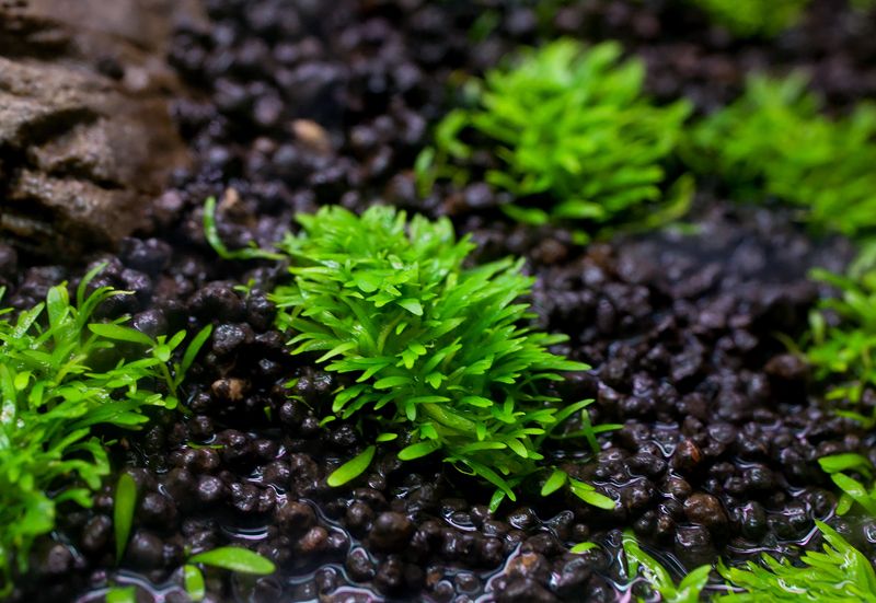 Набичил съм осветлението яко :-D Все още обмислям варианта с торенето понеже съм с аквасойла.Водата ми е осмозна че не искам да прецаквам стъклата на аквата.Засега пръскам сутрин и вечер.