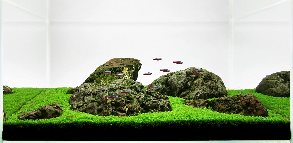 Краят е много добър, но защо края, ще го разваляш ли? Много добре се е получил белия фон почти закрива контурите на аквариума. Така все едно не е във съд а е пейзаж, но от друга страна опашките на неоните почти не се виждат. Или поне изглеждат къси, елеохарис много добре се е вписал във картината.  *THUMBS UP*