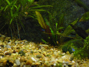 Поздравления! Прекрасен аквариум. Само бих ти препоръчал да сложиш хетерантерата зад корена. Тя прави добра туфа и ще го скрие. Моята я подрязвам всяка седмица, защото стига повърхността.