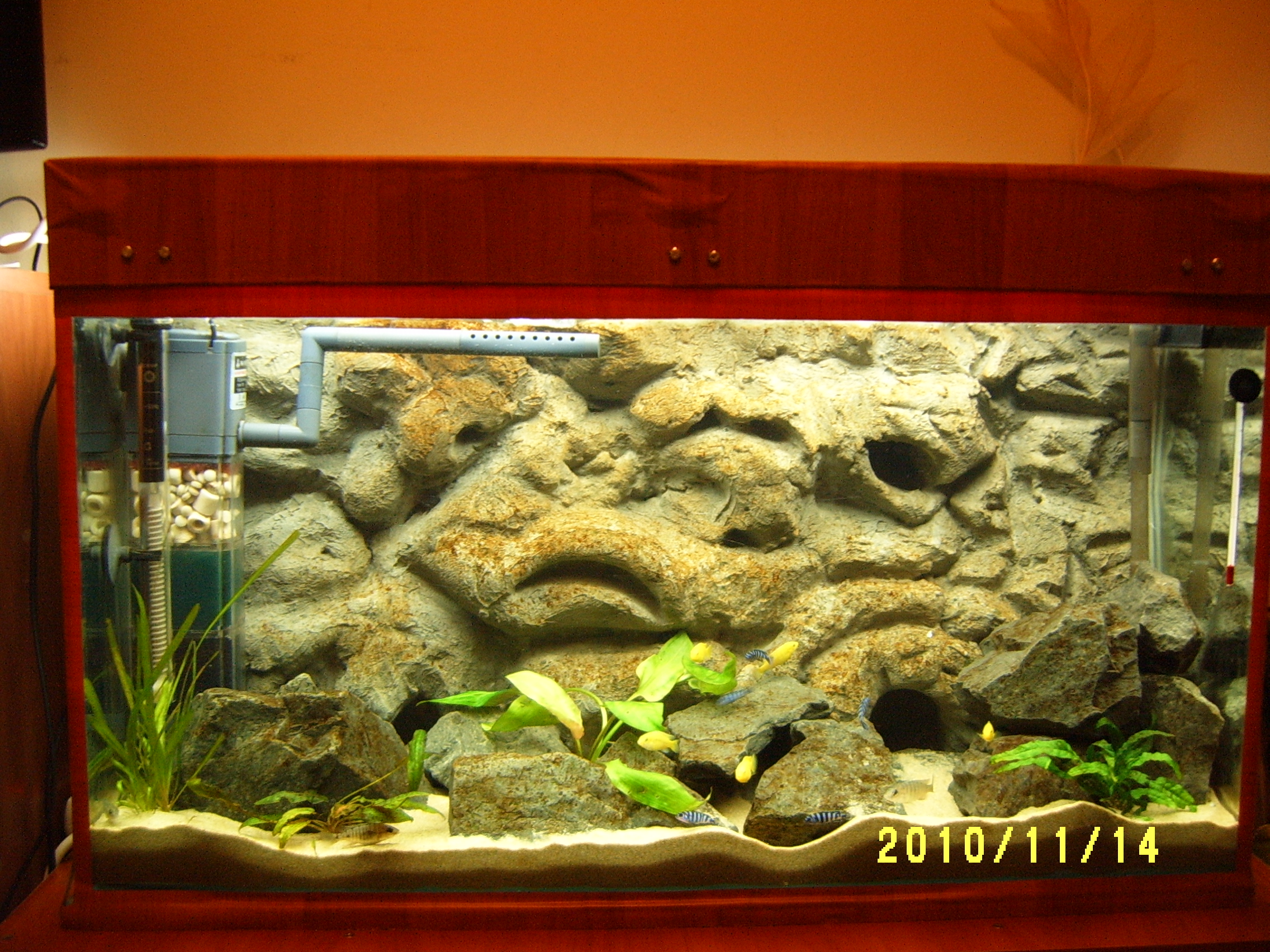 Да се представя и аз. Аквариума е 100 литра. Стартиран на 09.10.2010. Филтрация Fh-1904 Asian Star 1500 литра на час  и Hailea- Hang On Filter SL-206 500 литра на час, пълен с керамика. Нагревател Sun Sun 200w и 2 луминисцентни тела китайски по 22w.