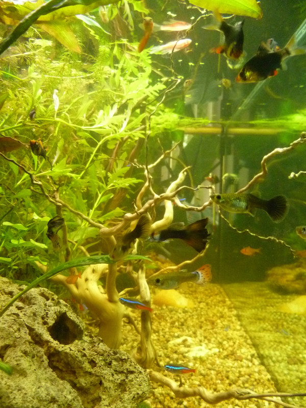 Здравейте колеги, ето някоя и друга снимка от нашия аквариум и развитието му, за сега растенията се развиват добре, а пък и обитателите му се увеличиха, но не прекалено разбира се, поздрави.