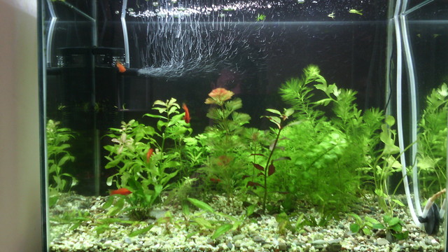 Да подавам въглерод с л. к. и сода, защо да е рано не се ли пуска от началото, а като тръгнат растенията се започва и торене. За обитатели не съм решил какви рибки да пусна.