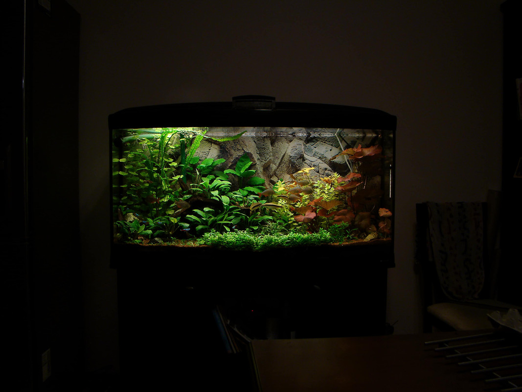 Описанието  е в предната тема. Иначе накратко - Cayman 110 Scenic(~300л), 2x 39W, CO2 и торене с Макро и Микро елементи съответно.