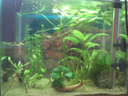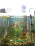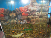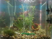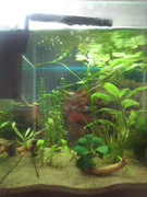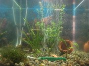 Аквариума е 32л,Осветление 2х8w незнам какви точно са лампите.Обитатели(6 скаридки и поколението на едната двойка,3 неона и много малки лепки(незнам какви са,но не пречат)