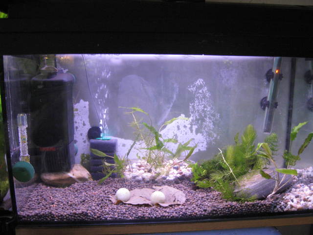 Нямам подложка. Само грунда насипах който е с размер към 0,5мм до 1см. Слагам  всеки ден по 1 до 1,5 мл. Изикарбо. При седмичната смяна на вода добавям и Профито. Като допълнение има и Со2. Нищо друго  :-[