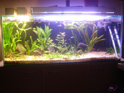Здравейте. Това е новият ми акариум 260л (130/40/50). Филтрация: флувал 304 и гъбата с филтърна глава. Осветлението е от стария аквариум, но мисля за 2х 120 см Т5 и 2х 120 см Т8. Пуснах го преди около месец. Извинявам се за лошата снимка. Приемам всякакви съвети и критика.