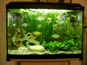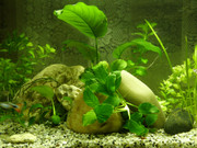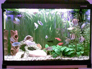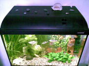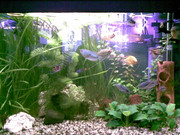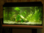 Втори аквариум специално за гупи.В първия при Трихогастери и Скаларии просто няма как да наблъскам и гупи а са ми най-харесваните риби.Аквариума не е толкова голям колкото изглежда- 60 литра е.Просто е нисък и дълъг.След някой ден ще се справим и с пердетата отзад ;) Колебая се -бял или черен фон.