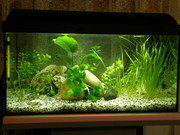 Хубаво аквариумче си спретнал.Сложи един черен фон и ще заспи работата.Има потенциал аквариумчето.Сложи някое червено растение. *DRINK*