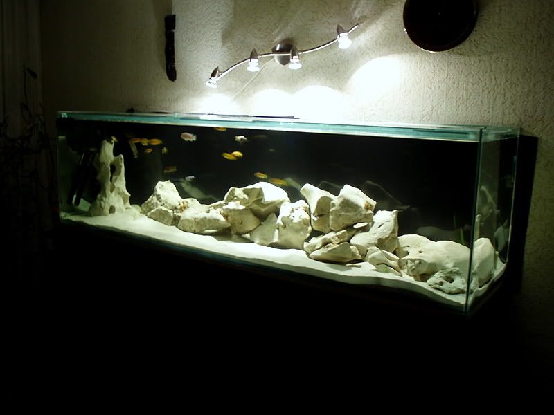 Аквариума е гоцки, ама тия лампи не ти ли светят в очите? Май само на мене не ми харесват.