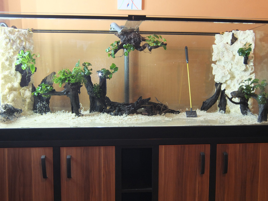 Аквариума ти с тези риби и растения няма да го бъде ,в смисъл ще брадяса всичко.Наредил си го но дано си и помислил как лесно да бъркаш и лавираш между декорацията,вярвай ми много ще сифонираш.Макар че като гледам грунда е ситен,което значи че всичкия боклук ще ти плува постоянно във водата.Филтрите обират, но толкова няма да успеят.Скат и дискуси не е за такъв тип аквариум.Преди да се захващаш с нещо по добре питай  :-)