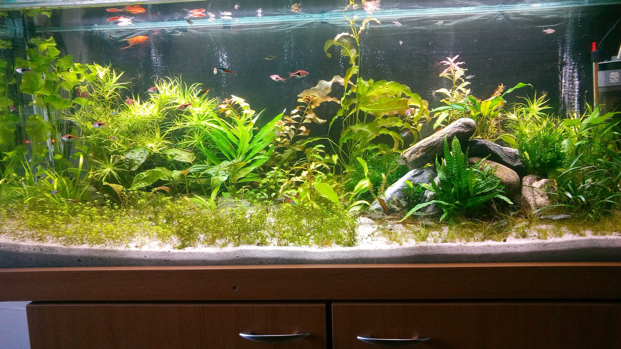 Тъй като преди месец ми умряха много риби реших да си развъдя малко. Спретнах си едно родилно размери 100х50х50 едно филтърче Флувал 304 малко камъни малко рстения една женска и два мъжки Карденала и вече имам много малки.
