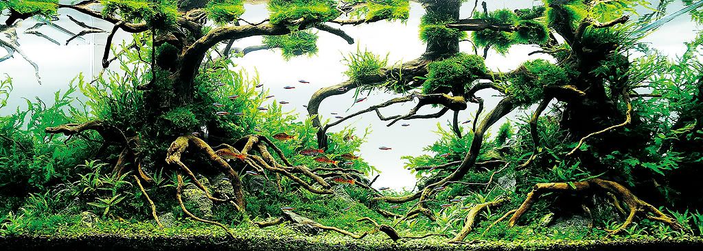 От друга страна корените са уникални и могат да се оставят само те с няколко камъка и да оформят нещо от този стил: