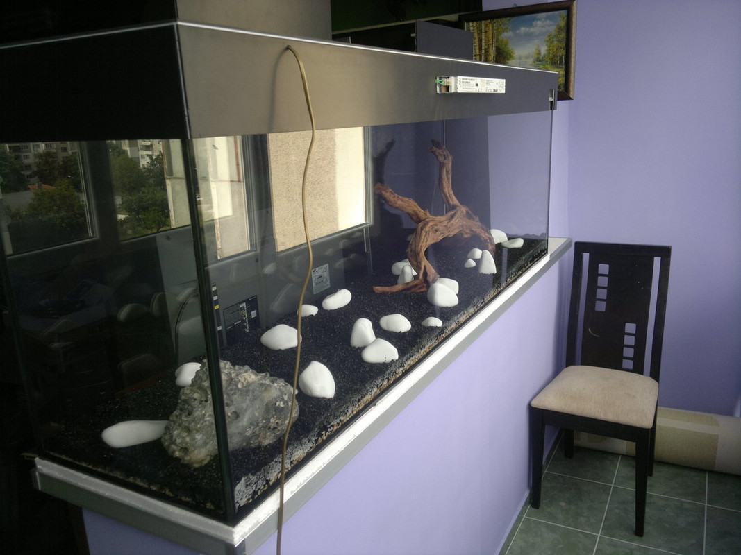 Белите камъни, можеш да скупчиш в единия край и да им привържеш микрозорум,  анубиас или и двете. Седи не лошо...