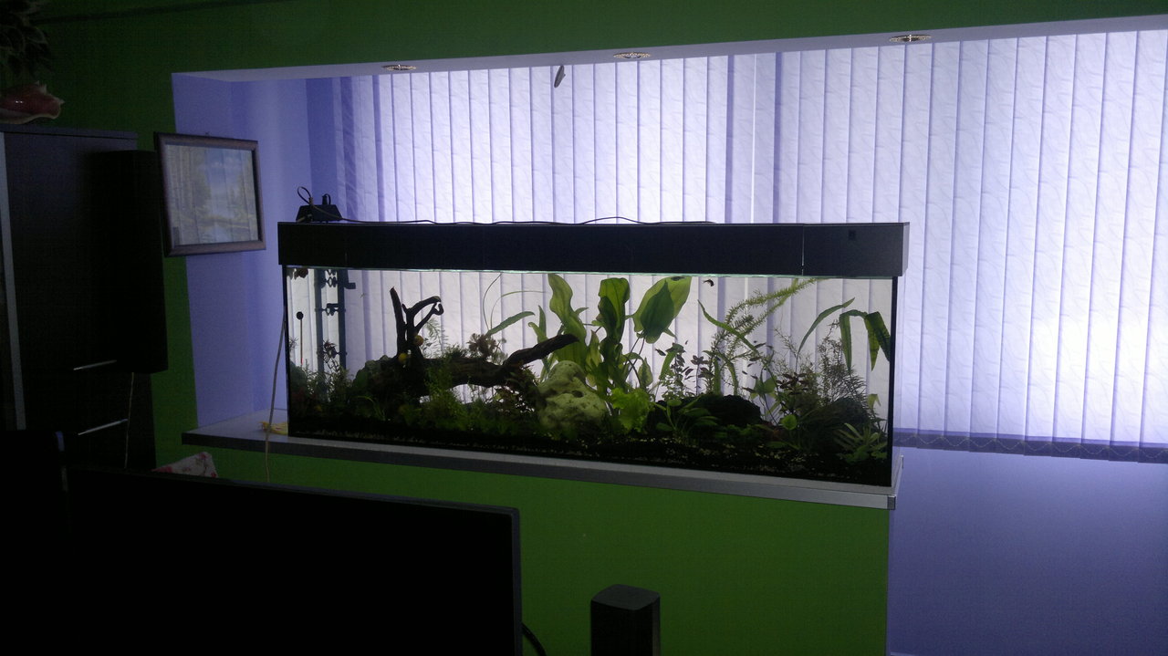 Да попитам колегите за нощуването на аква-та ми дали е вредно да стои така цяла вечер, (6-тата снимка от долу на горе, където са само 2 лилави лампи на терасата ми, осветява аквариума и ме притеснява дали още ще черпят светлина рибите и растенията и дали пречи за ден и нощ при тях?!   *mislia*