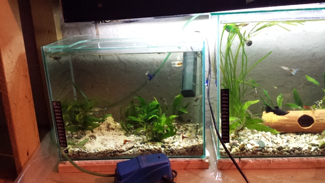 Аквариумите са по 30 и 22 литра, главно с живородки,анциструсчета и два коридораса по един във всеки аквариум.