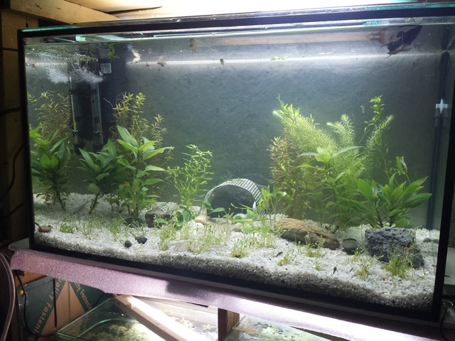 100 литровият аквариум вече се заформя.