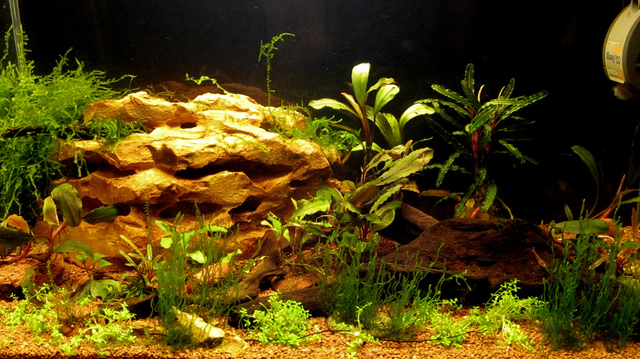 А ето го и самото аквариумче за тях.След доста умуване,разместване даже смяна на грунт,това се получи.Все още не всички са тук,но постепенно и това ще стане.