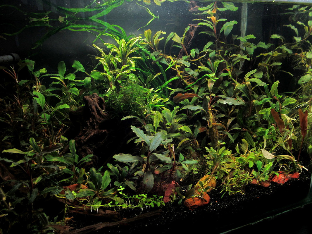 Да подавам СО2 и минимално торене.Трябва малко да вдигна калия да започнат да цъфтят повече.В другия аквариум има около 15 цветчета.