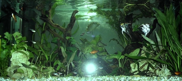 Трети ден. Ново осветление на PHILIPS 64W, и рибките в новия си дом.