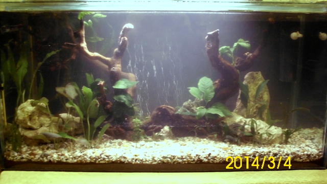 Растенията са:  анубиас, криптокорини и ехиндоруси, (утре ми пристигат още корени криптокорини, ехиндорус, нимфея лотус, нимфоидес таиван и апоногетон ундолатус).
