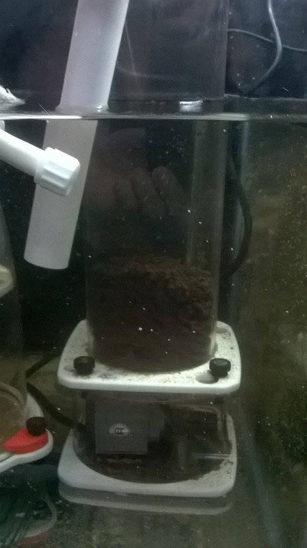 Ето какво се случва при мен. Сложих 50 микрона фитопланктонна мрежа на изхода на реактора да видя какво излиза от реактора, за 4 дни събрах около 1 кафена лъжичка кафява маса, която определено не е бактериална. Намалих доста течението вътре в реактора и сега за 4 дни количеството кафеникава маса е почти незабелижимо.