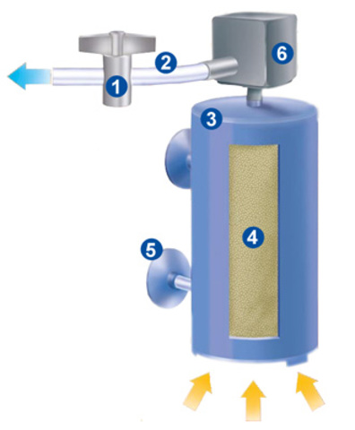 1 - кранче за регулиране на дебита, 6 -помпа, 4 -медията