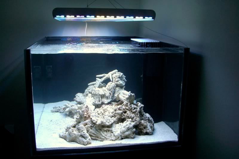 180g Custom rimless Starphire, 48 X10 ATI PM T5 fixture, Vortech MP40w X2 with battery Backup, Deltec AP851 Skimmer, Geo 612 Calc reactor, Profilux Doser, Neptune Apex controller