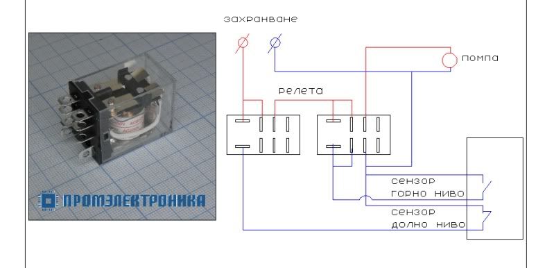Имах 2 налични малки релета,вързах ги по следната схема https://aquariumbg.com/forum/proxy.php?request=http%3A%2F%2Fi259.photobucket.com%2Falbums%2Fhh296%2FIlianidis%2Fshema.jpg&hash=99c22f02694667f45790977ce6b3ecc3a27e3b00 и симулирах спадане на нивото в съмпа.Помпата изключва при достигане на долно ниво.Обратно се включва след достигане на горно ниво и не изключва при падане на нивото между двете,едното реле шунтира другото.Така получената пауза е добре,за да не цъка постоянно помпата,а при регулирано ниво между двете нива и стабилизирано,системата ще работи без необходимост от тяхната работа,това е в случай на авария,да не прелее водата от аквариума или пък помпата в съмпа да остане на сухо.Първоначално щях да взимам готов комплект за регулиране,но с 2 релета и 2 сензора,работата се оказа елементарна и много евтина.Неудобството е,че системата е под напрежение 220в.Сензорите надявам се да са надеждни-от китайско за 220в,защото има и други за 100в,та трябва да се внимава какво се взима.Но има варианти да.се намали и напрежението,което ще ми остане за домашно да го мисля. Релетата ми са като модела на снимката и символично съм изрисувал начина на връзването.Мисля че горния сензор трябва да е под вода при внезапно самоволно спиране на захранването,за да може систематра да тръгне сама отново,инак ще трябва да и се помага.