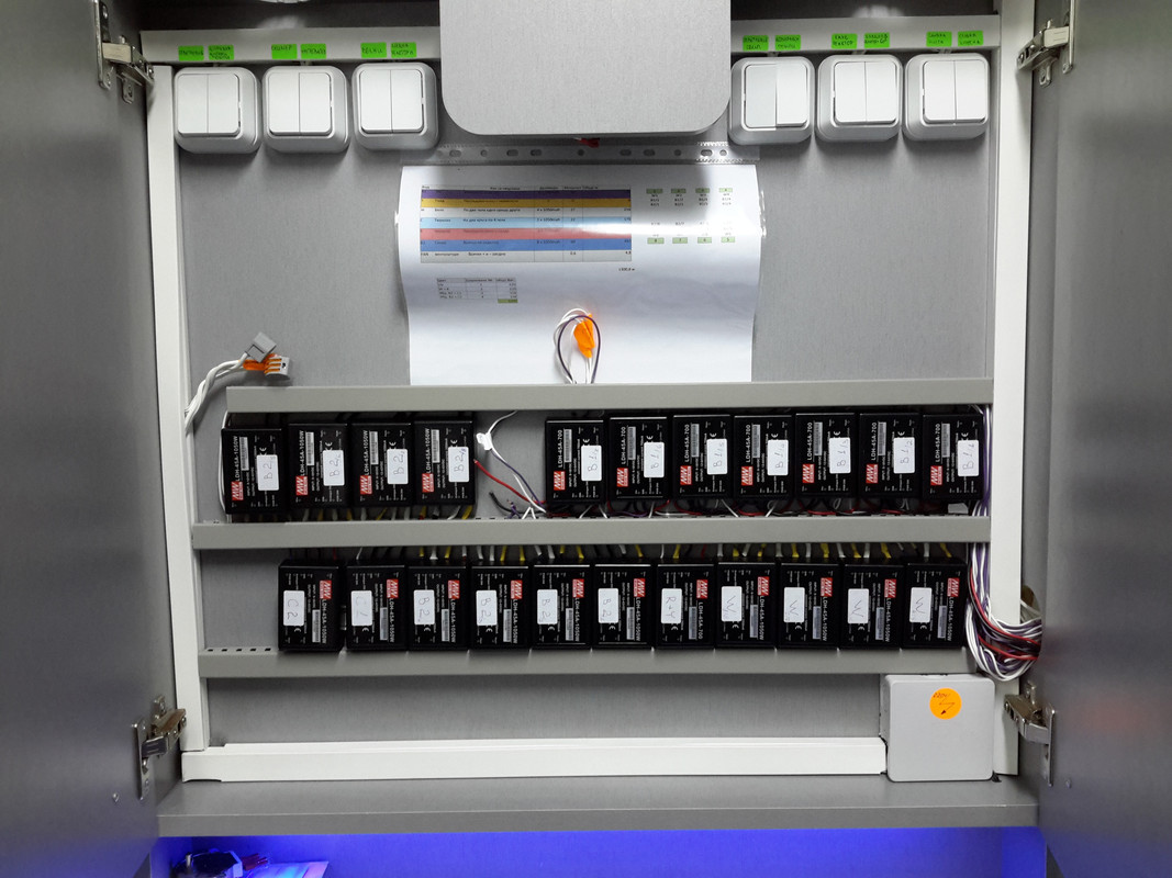 Отвън ги сложи, греят си стабилно и имат нужда от много въздух, или направи вратите на таблото от някаква декоративна решетка.