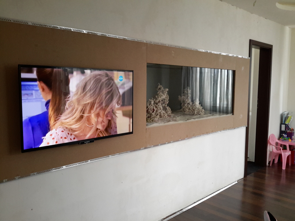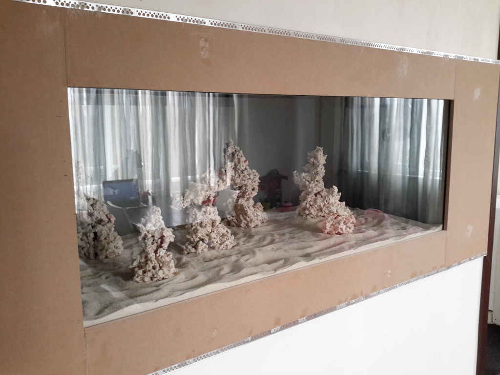 Мислих си за нещо като бар пред аквариума с два високи стола....