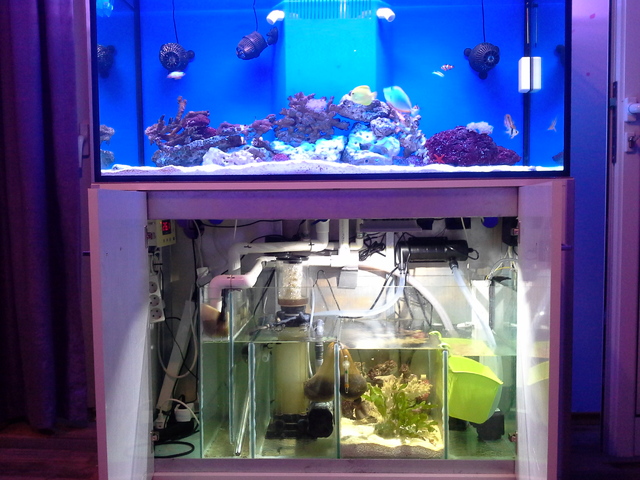 След първият ми опит в соленото http://aquariumbg.com/forum/solenovodnite-akvariumi-na-chlenovete-na-foruma/morski-za-ribi-350l , не мога да кажа, че беше неуспешен, понеже проблеми нямах там. Ако не броим факта, че супер много ме дразнеше виждащият се скимер :duvar:. Та накратко продадох стария аквариум и направих нов и този път мисля, че се получи доста по-добре.