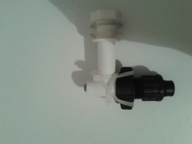 Направих го от пластмасово кранче за бидони, една стара част от ув лампа и капачка от химикал.Не е естетически красиво,но ще работи и няма да се вижда.След това залепих разпънка и водачите за стъклените капаци.Предпочитам аквариума да има капаци за да не ми се налага да доливам прясна вода толкова често.Те няма да стоят плътно затворени така че все пак ще има някаква циркулация на въздуха.Освен това скимърът ще смуче въздух от вън,а не от стаята ми където издишвам co2.Предвидил съм дълбоко пясъчно дъно,обмислям и фосфат реактор,но за него по натам