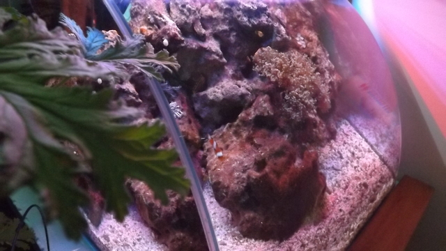 Аквариума е стартиран преди месец със стара вода за нов живот. Има около 7-8кг. полу-живи камъни, 5кг. коралов пясък.