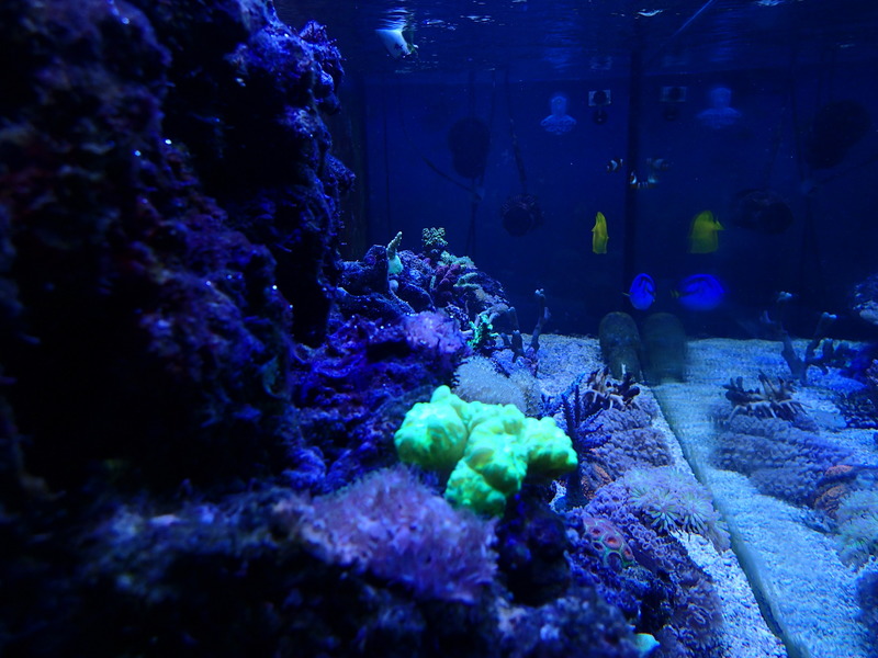 Снимките са ужасни (ще кажеш, че съм ги правил аз  *JOKINGLY*), нямат абсолютно нищо общо с реалноста. В действителност аквариумът е много по-светъл, даже повече отколкото предпочитам аз :). А пък за цветовете да не говорим. Няма кога да седнем и да прочетем малко как се правят снимки на аквариум с диодно осветление :).
