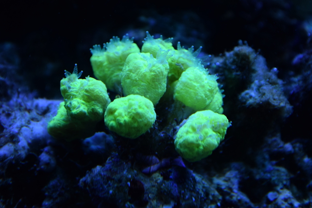Естествено при наблюдението установих, че мисления за умрял бриареум е възкръснал и на втората седмица от светването освен, че си беше показал всички полипи, краищата им почнаха да придобиват характерния зелен цвят, малко по късно сложих и две фрагчета монтипори, които също не дават вид да се чувстват зле, полипите са навън а цветовете са добре, съвсем скоро планирам и няколко фрага акропори.