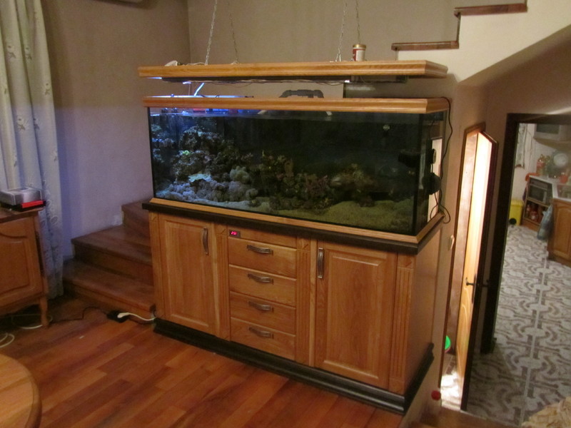 Оборудвана е с един вортек mp10 , диодна лампа-собствено производство 150w, скимер на аквамедик. Има разбира се автоматично доливане, защита на подкачващата помпа и термоконтролер.