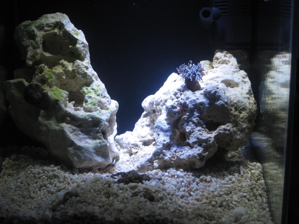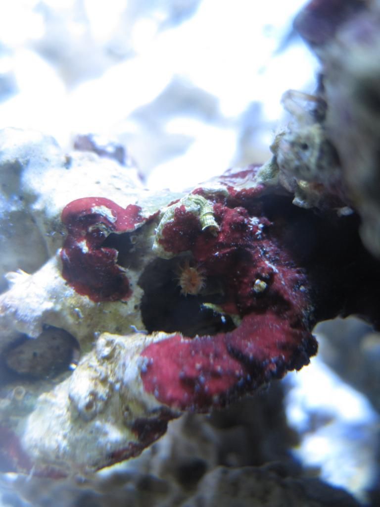 Със живото камъчи дойдоха някои интересни животинки, които си живеят вече няколко дни. Предполагам ,че това значи че водата ми е годна за обитатели. Скоро започвам да тествам. По камъчето видях bristle worm и feather duster. Bristle worm изчезна и не можах да го снимам, но ето снимка на другия: