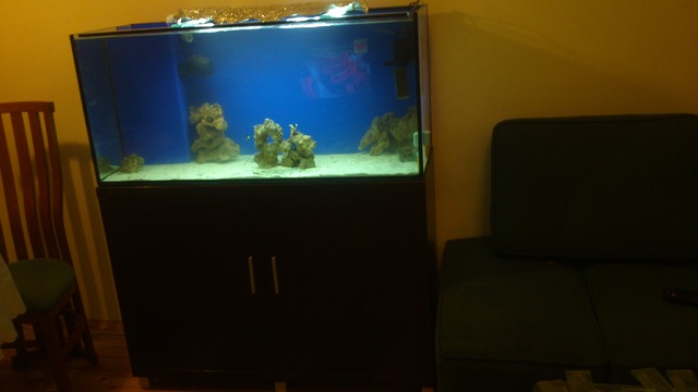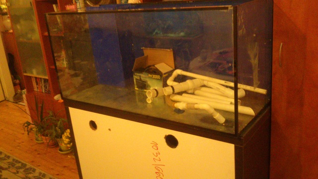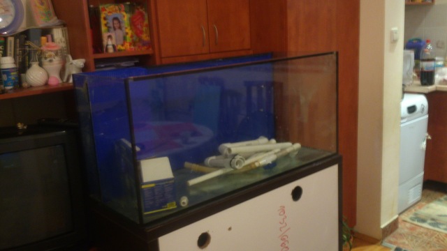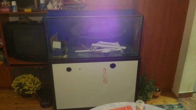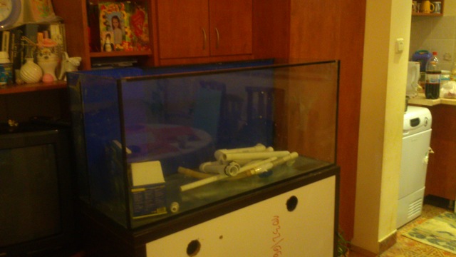 Това е аквариума чакам още неща по него и ще почвам лека полека да го пълня,шкафа е обърнат във момента няма да е така.