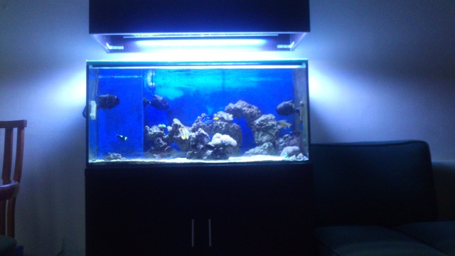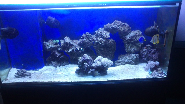 Отлага се смяната на скимера не мога да си намеря за момента bubble magus curve 7. Дамселите ги  преместих във новия аквариум във който ще гледам тригери и такива хищни риби, преместих ги защото биеха попчето и щяха да го убият *SORRY*