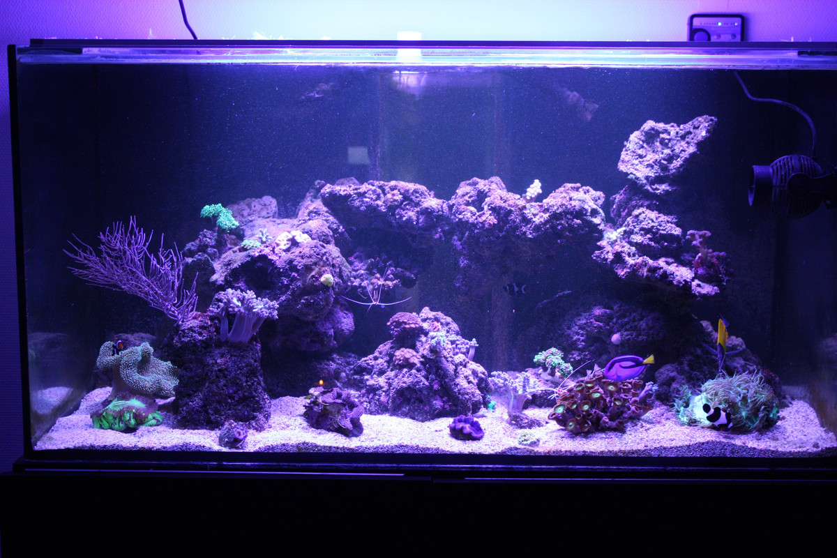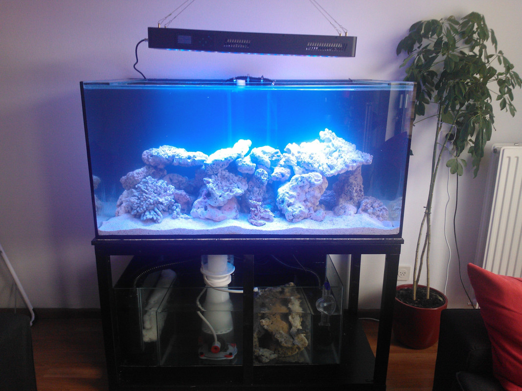 За жалост реши да премина на земноводни и този аквариум вече го няма. От него имах много голям СПС, който  не успях да опазя жив. Този аквариум беше RSM250 с всичко заводско, и само добавяше бактерии на две седмици и хранеше един път седмично (по неговите думи) и изглеждаше великолепно. Ще се радвам ако успея нещо такова да направя, но за сега е проба грешка. Сега за трети път имам акропора в аквариума и се надявам този път да я задържа за по дълго време.